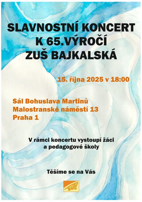 U příležitosti 65. výročí založení ZUŠ Bajkalská Vás srdečně zveme 15. října 2025 od 18.00 hodin
